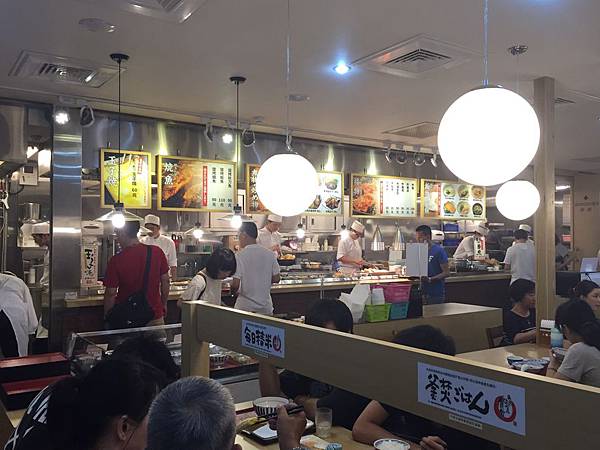 一進店裡就是這副熱火朝天的樣子,顧客拿拖盤選自己要的食物,到料理檯最底端結帳