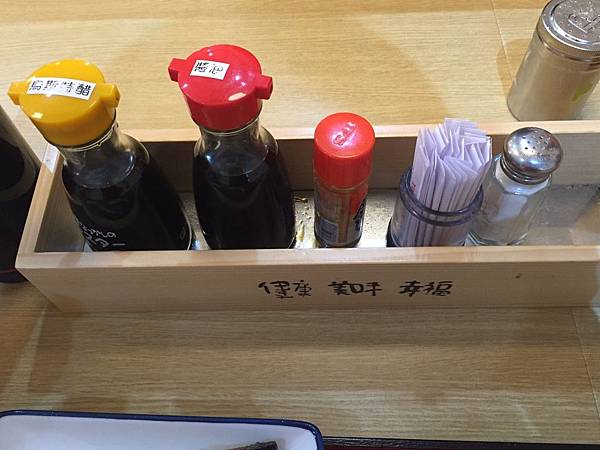 我在餐具區找不到醬料,後來才發現座位上有,但沒有芥末和檸檬這類的東西